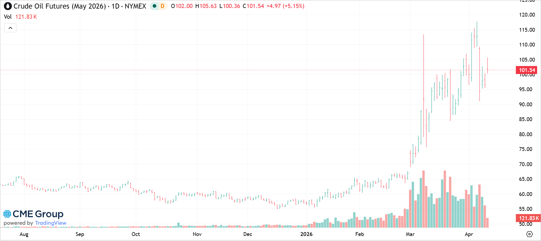 Crude oil futures, May 2026